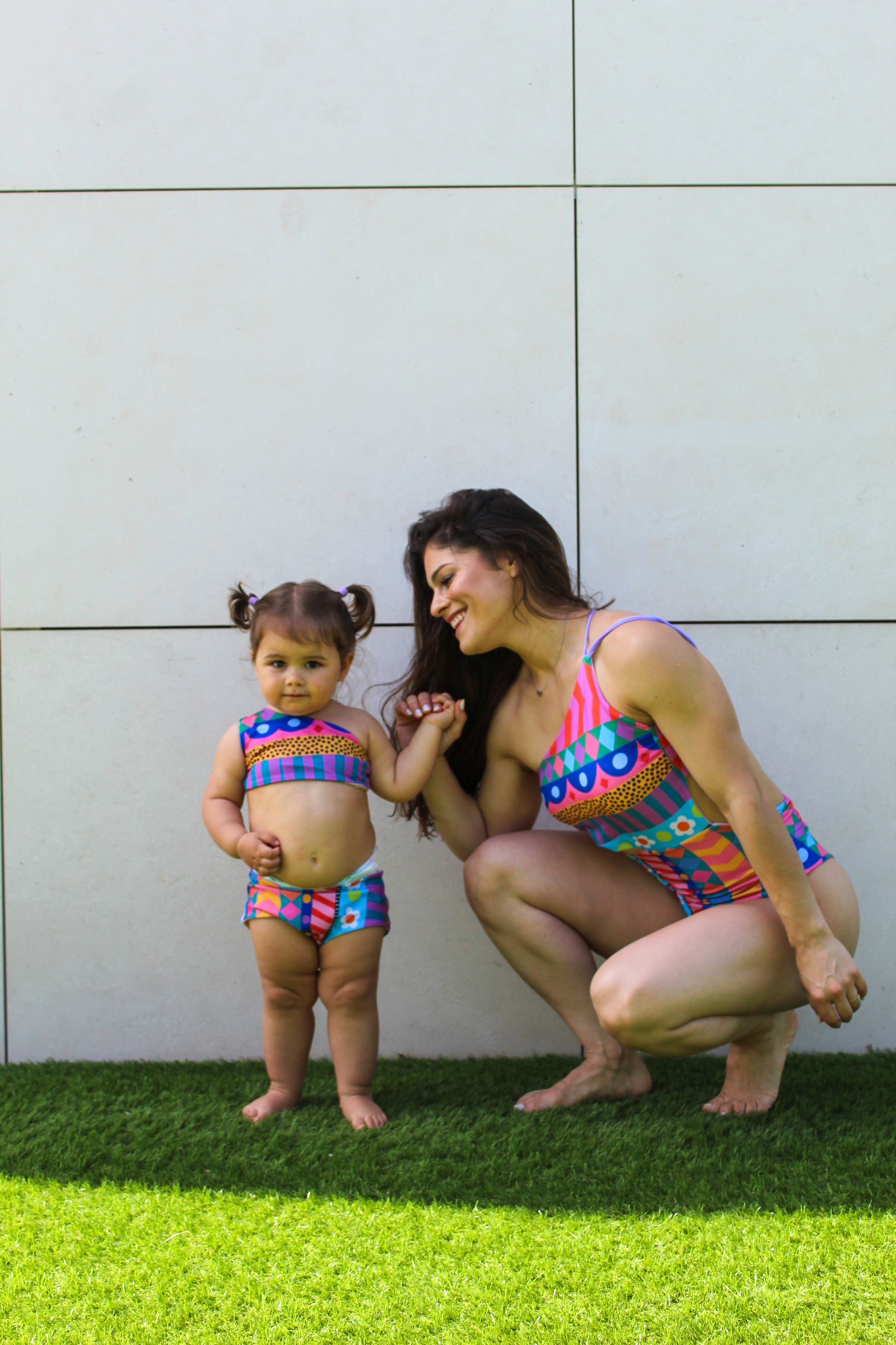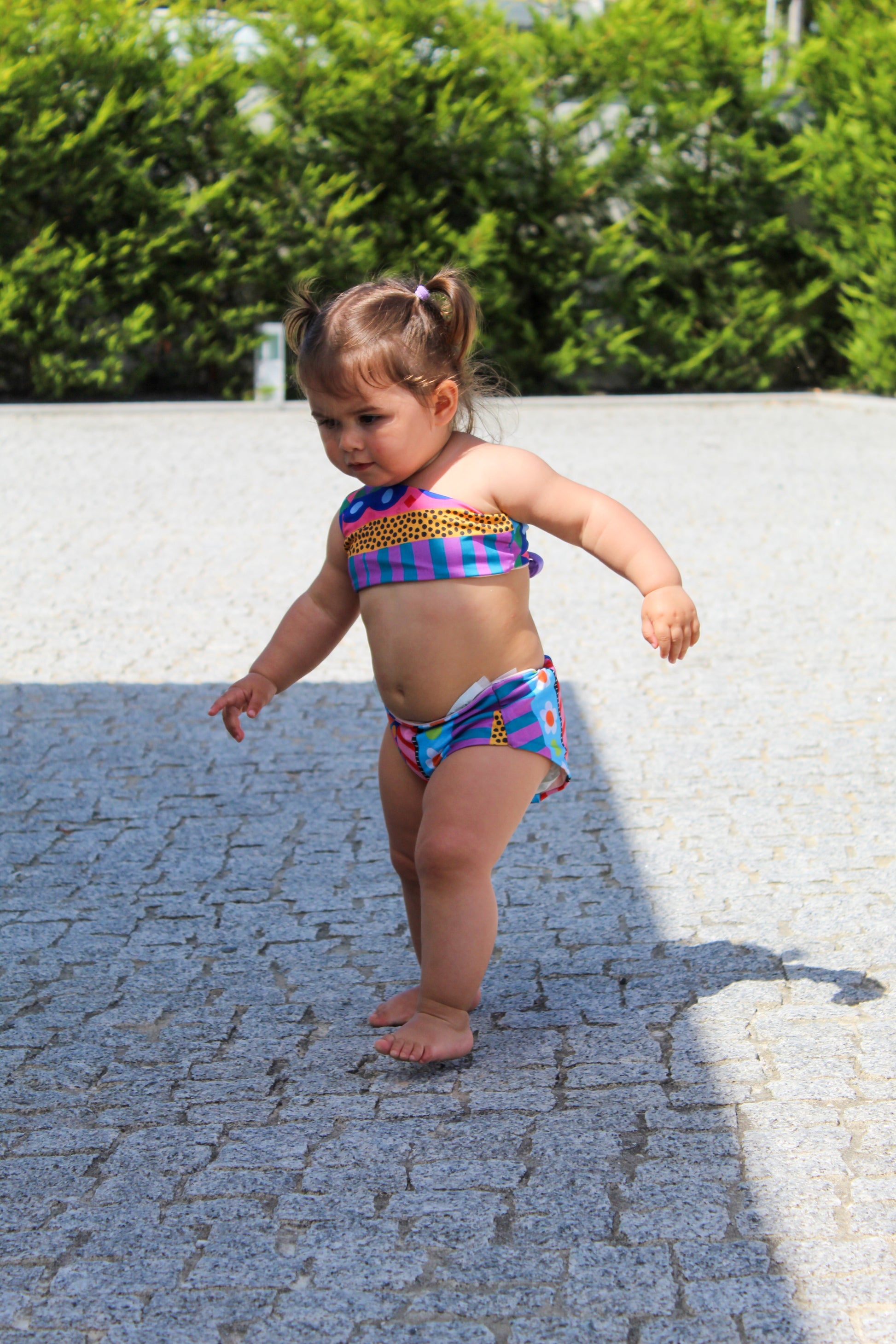 Biquíni bebé criança versão Maldivas, com parte de cima de um manto e atilhos nas costas.