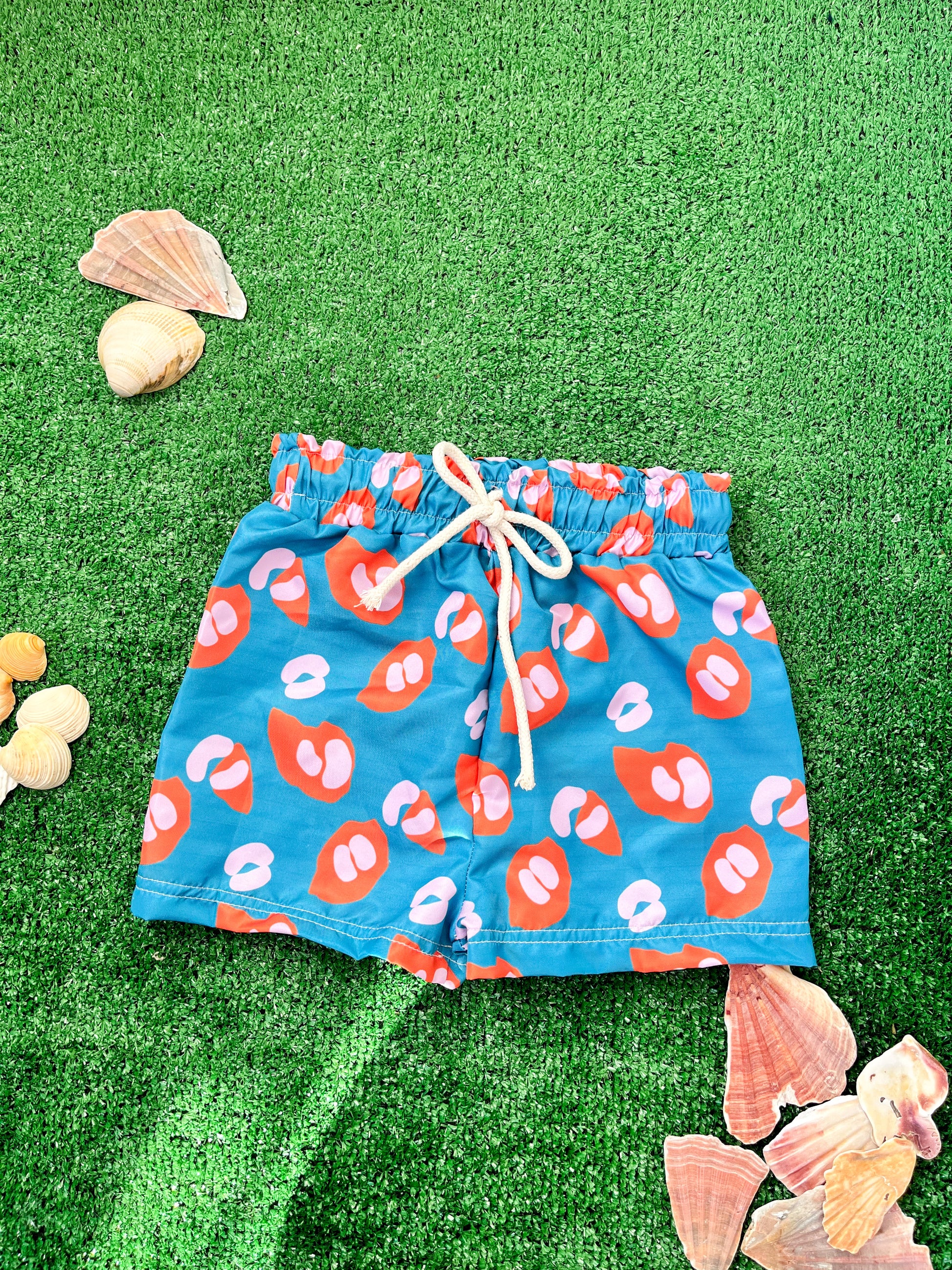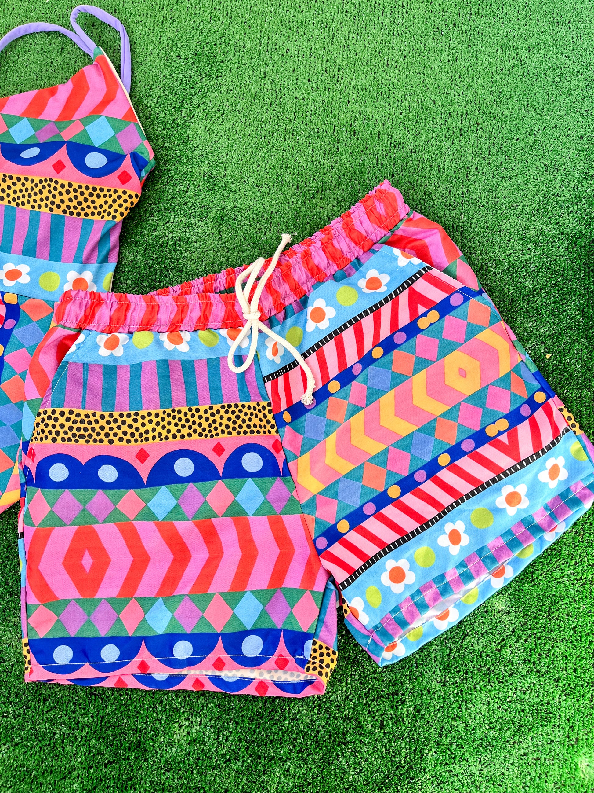 Calção de banho para adulto com bolsos e borro. Elástico e cordão na cintura