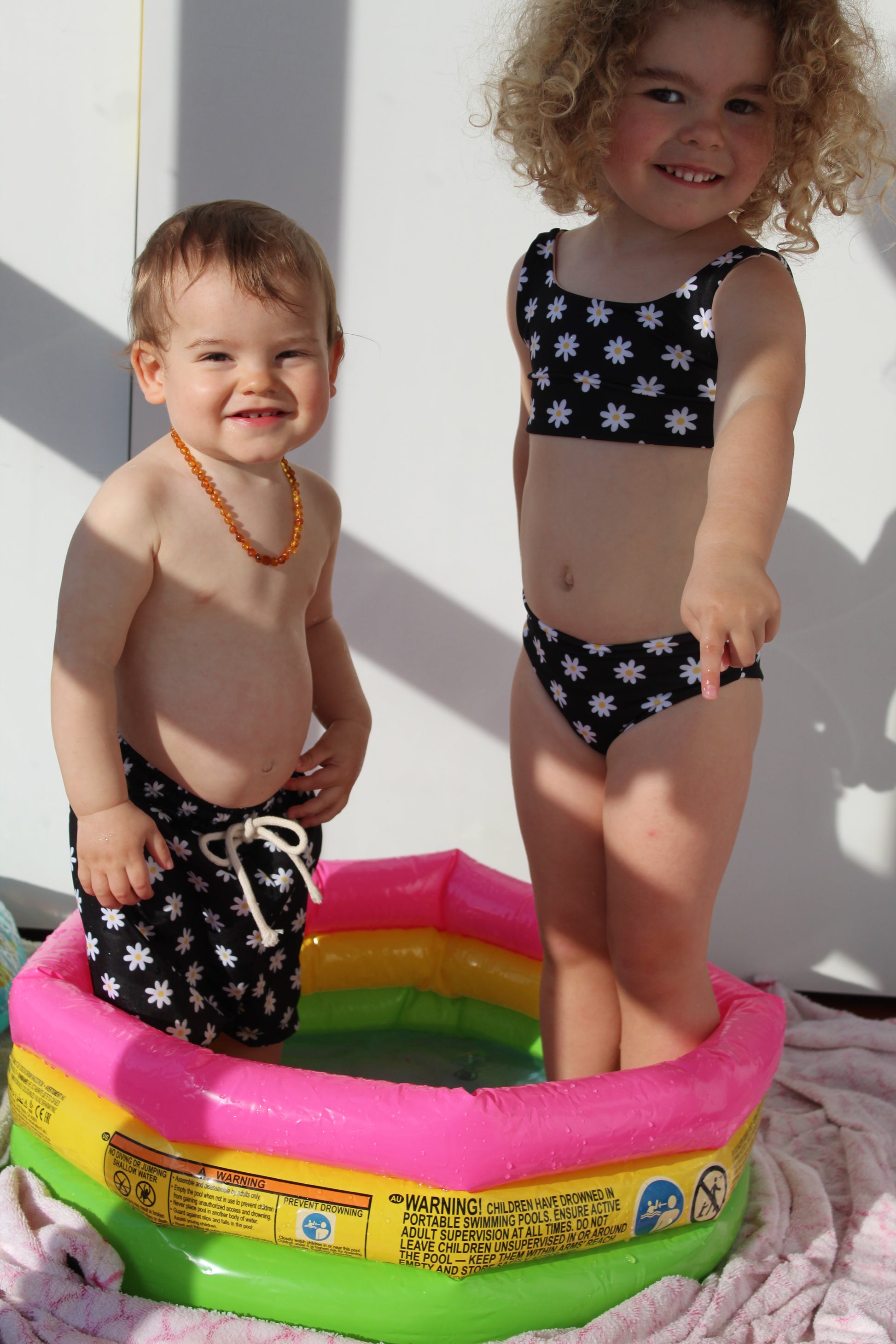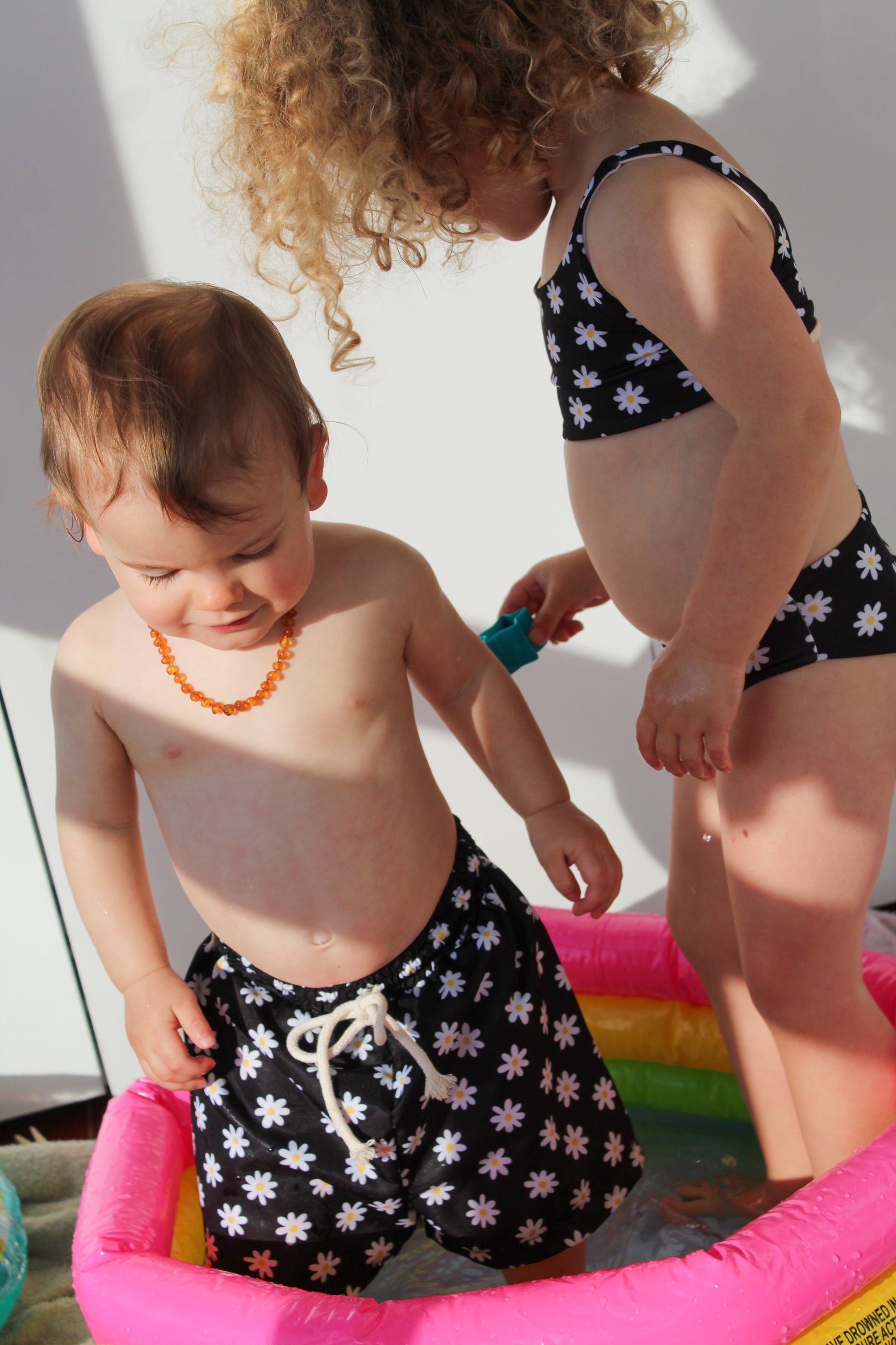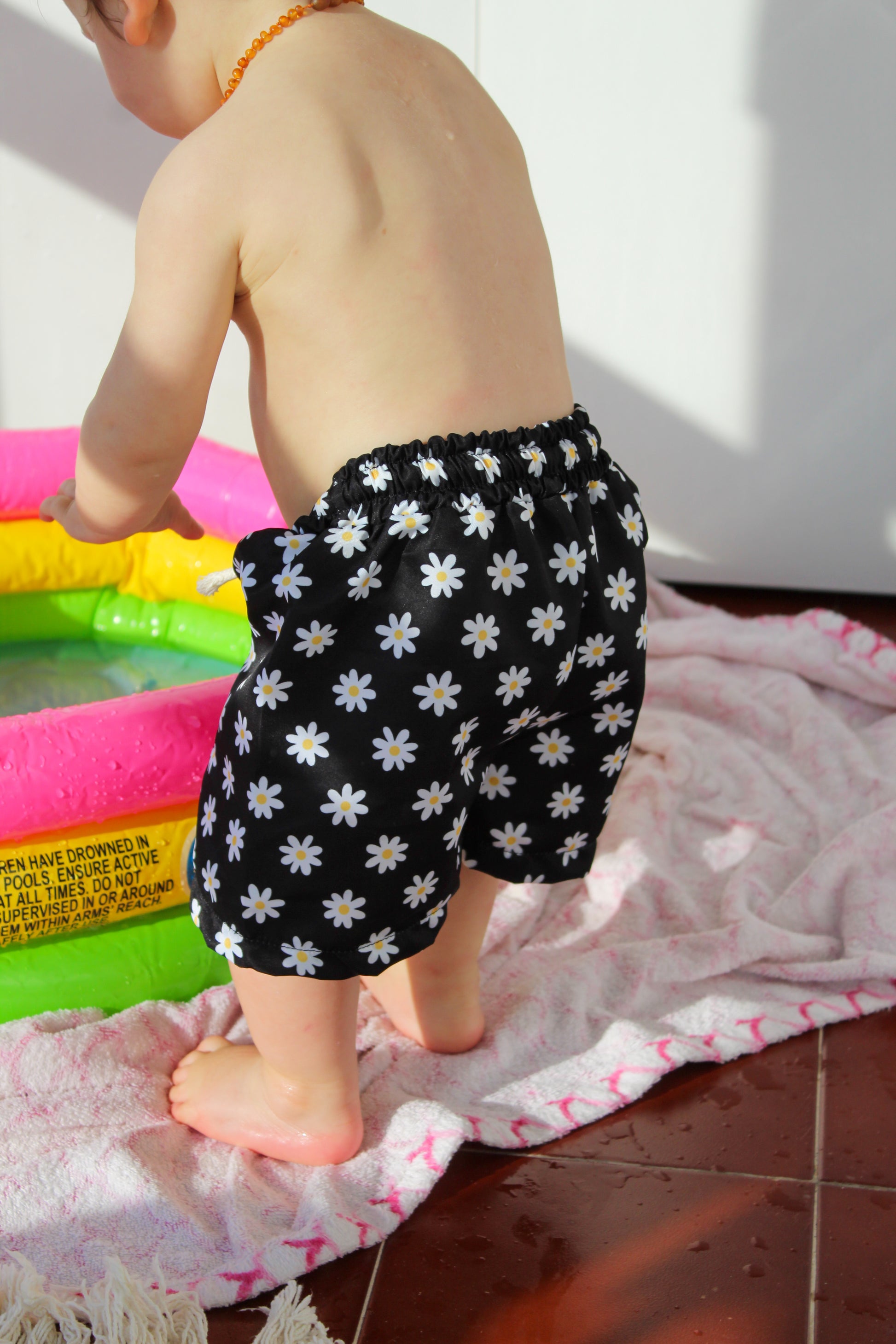 Calção de banho para bebé/criança com elástico cordão na zona da cintura.