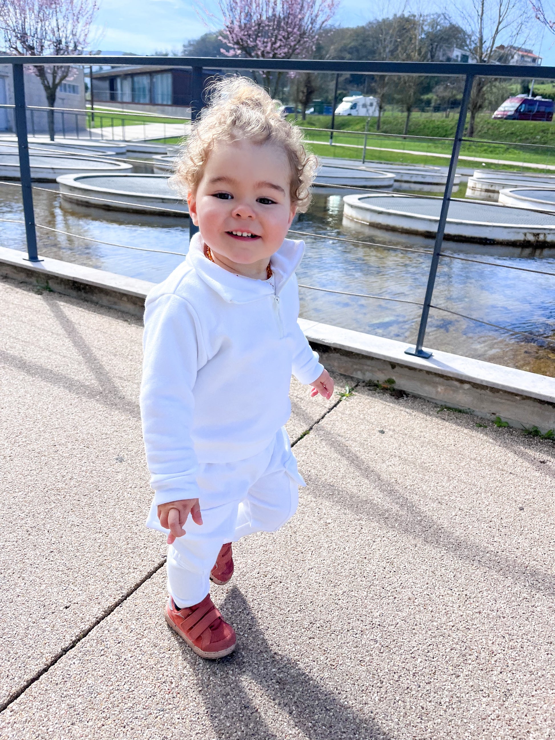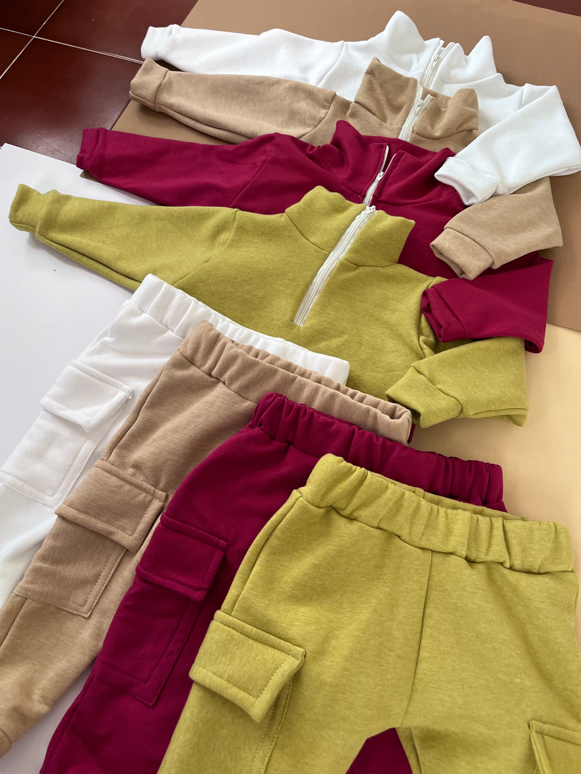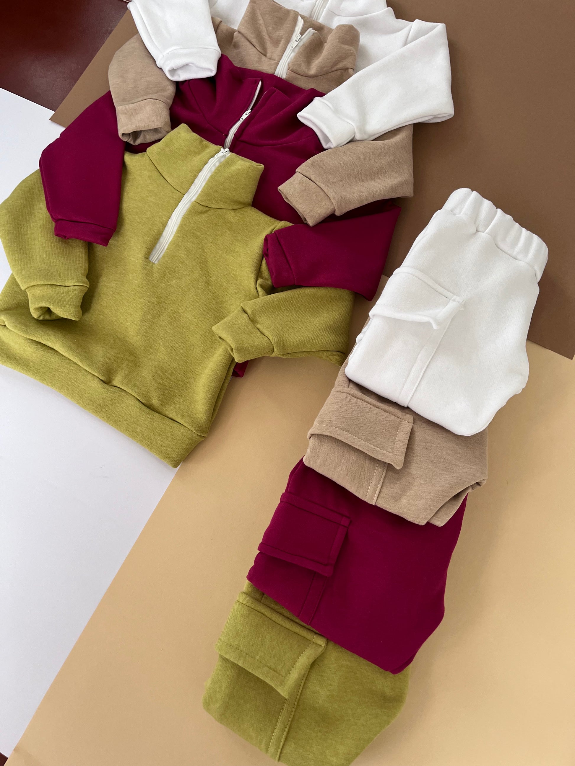 Fato de treino bebé/criança e adulto com gola alta com fecho e calças com bolsos chapados laterais.