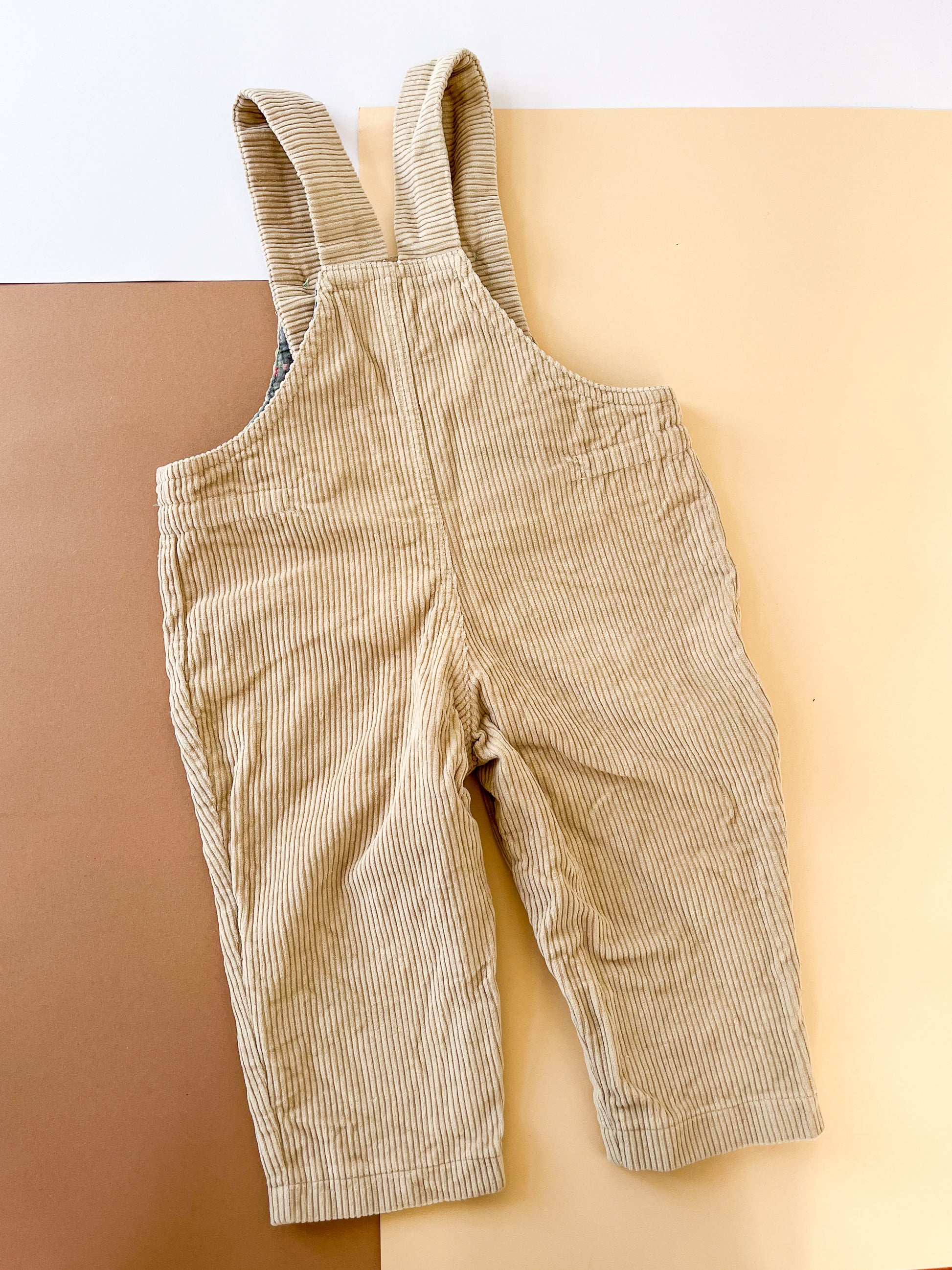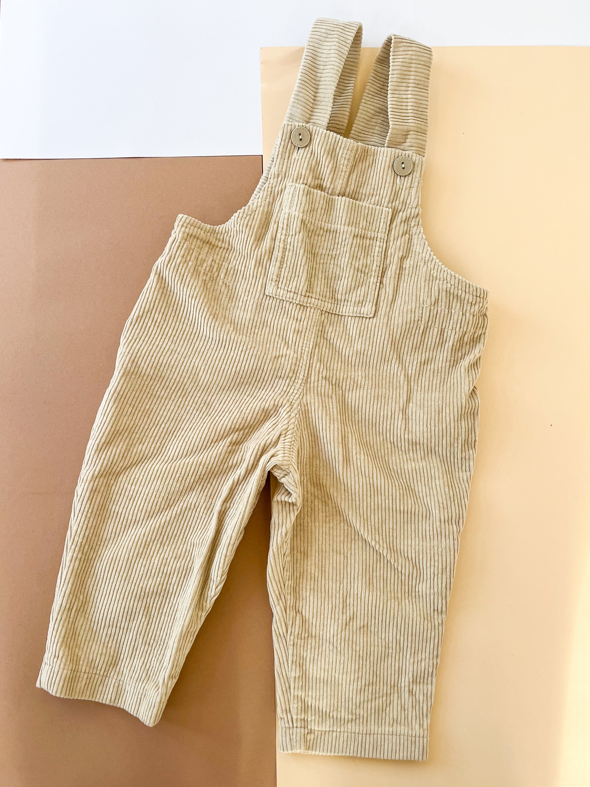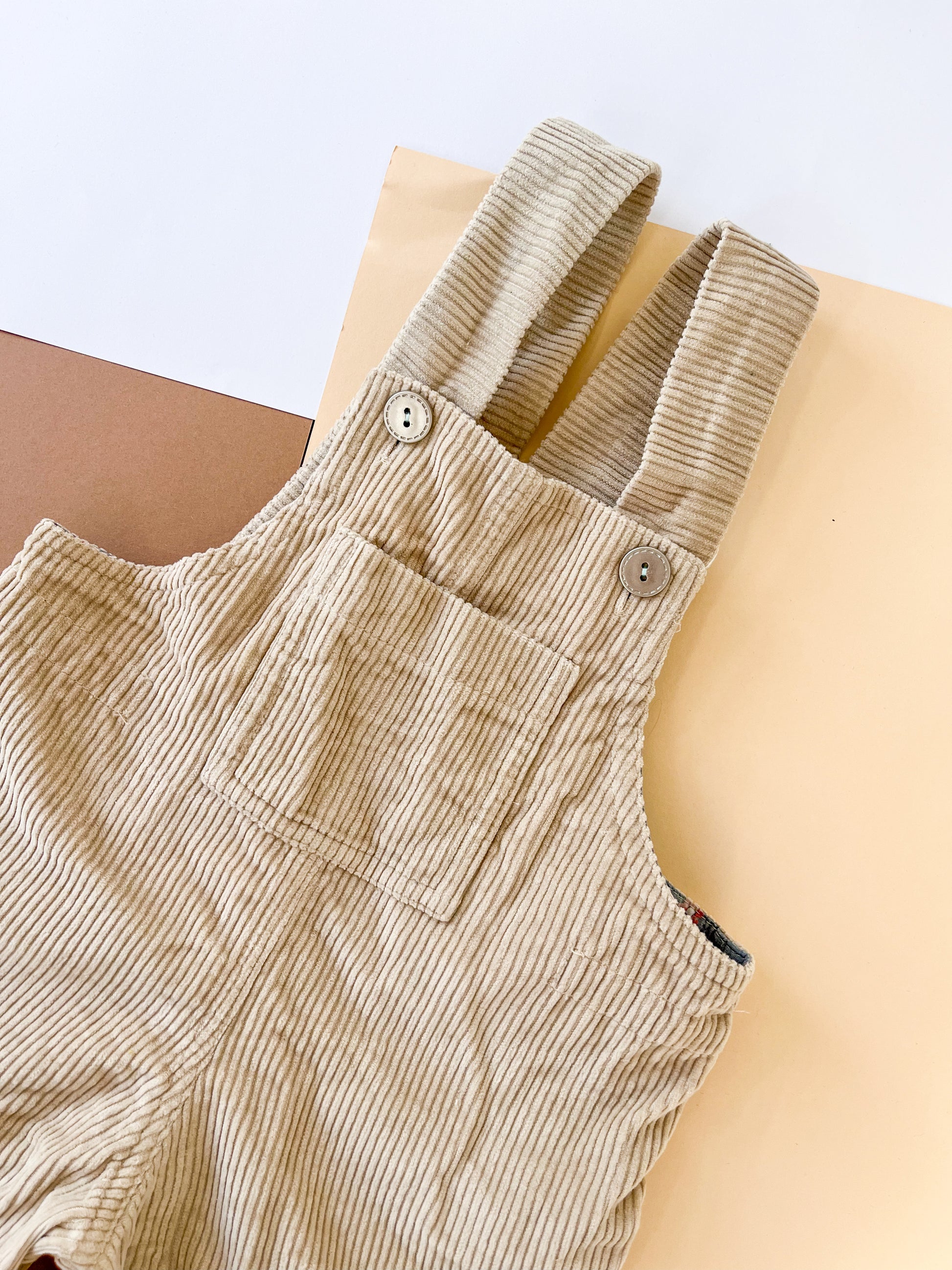 Jardineira clássica em bombazina de alta qualidade, forro em algodão. Elástico na lateral da cintura e botões nas alças. Bolso no peitilho.