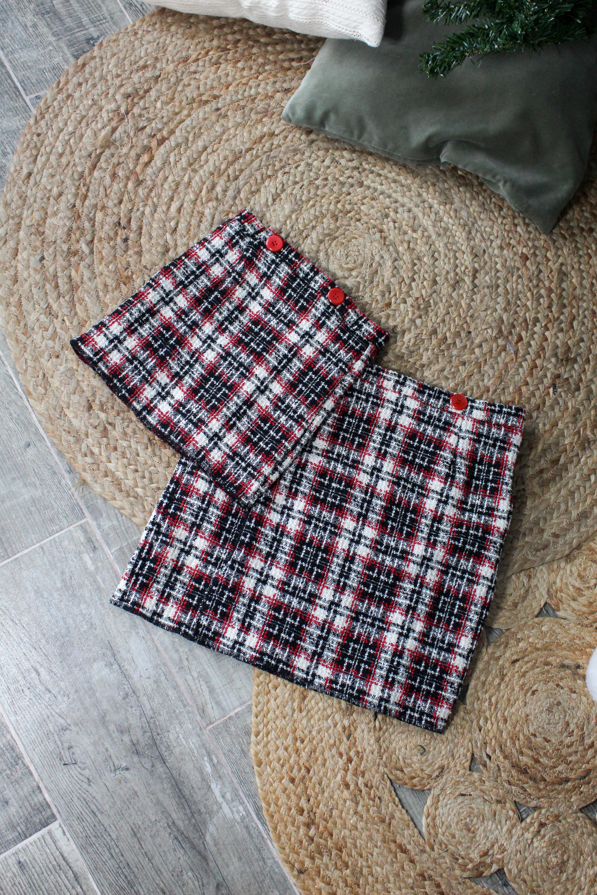 Saia traçada em tecido chanel.