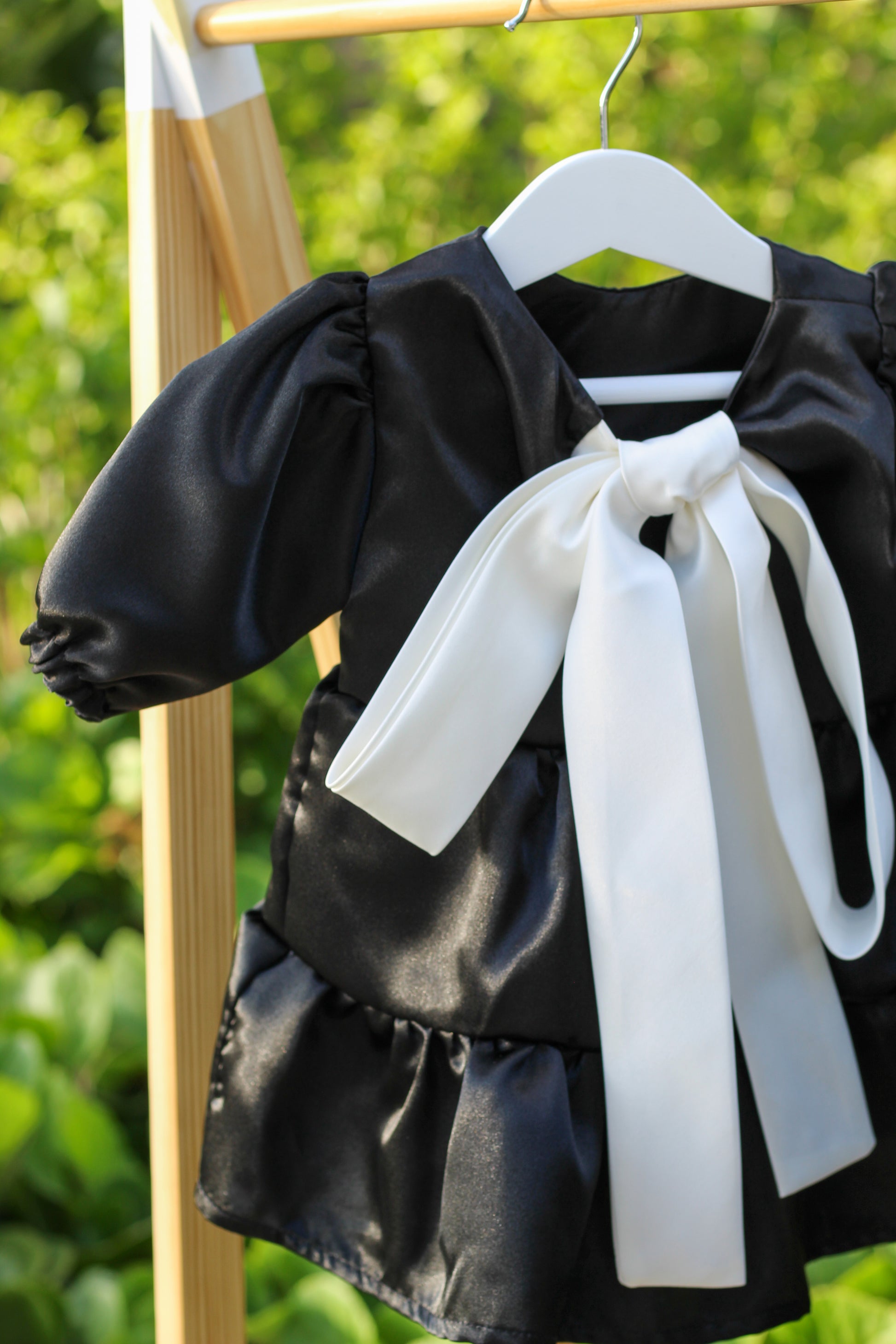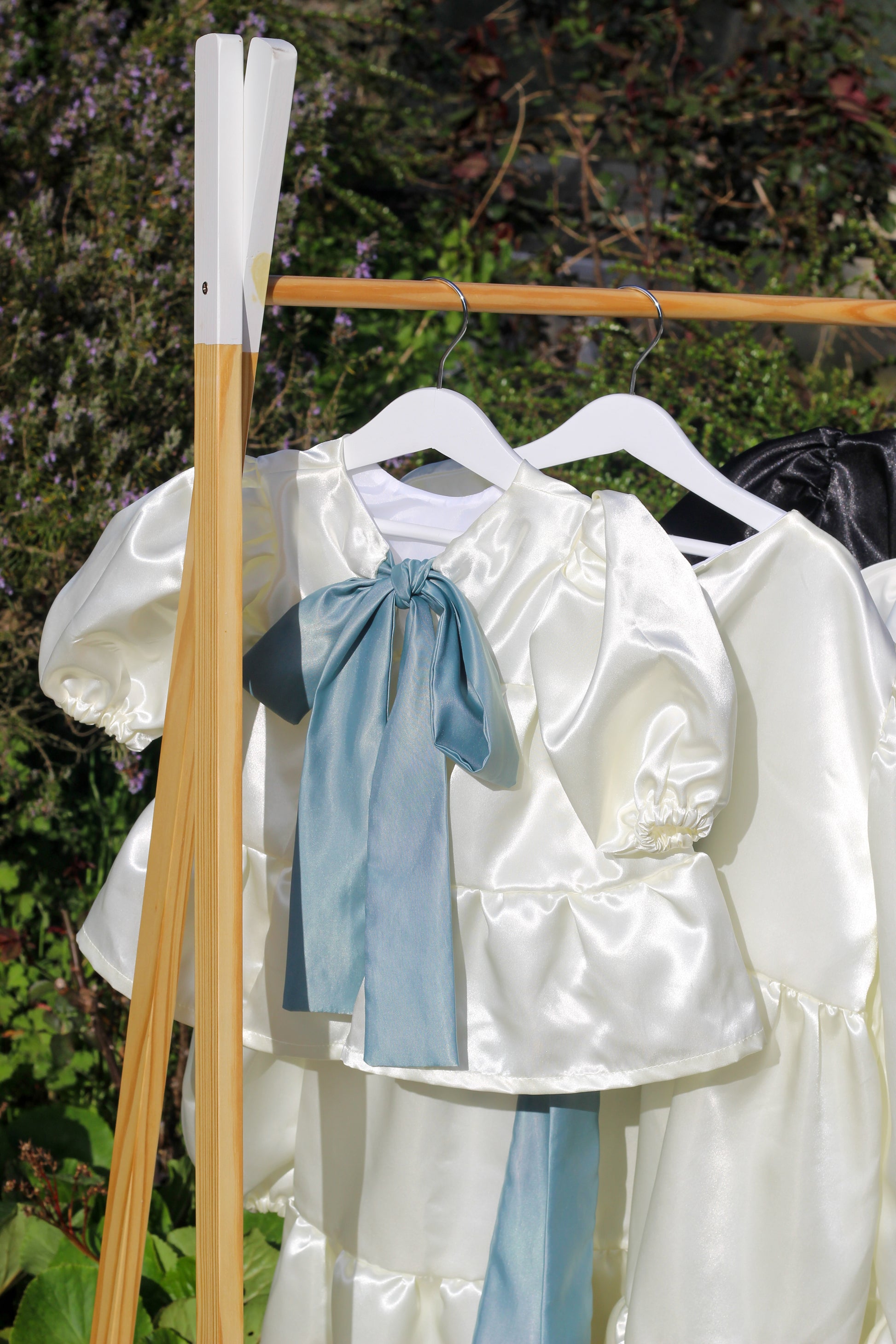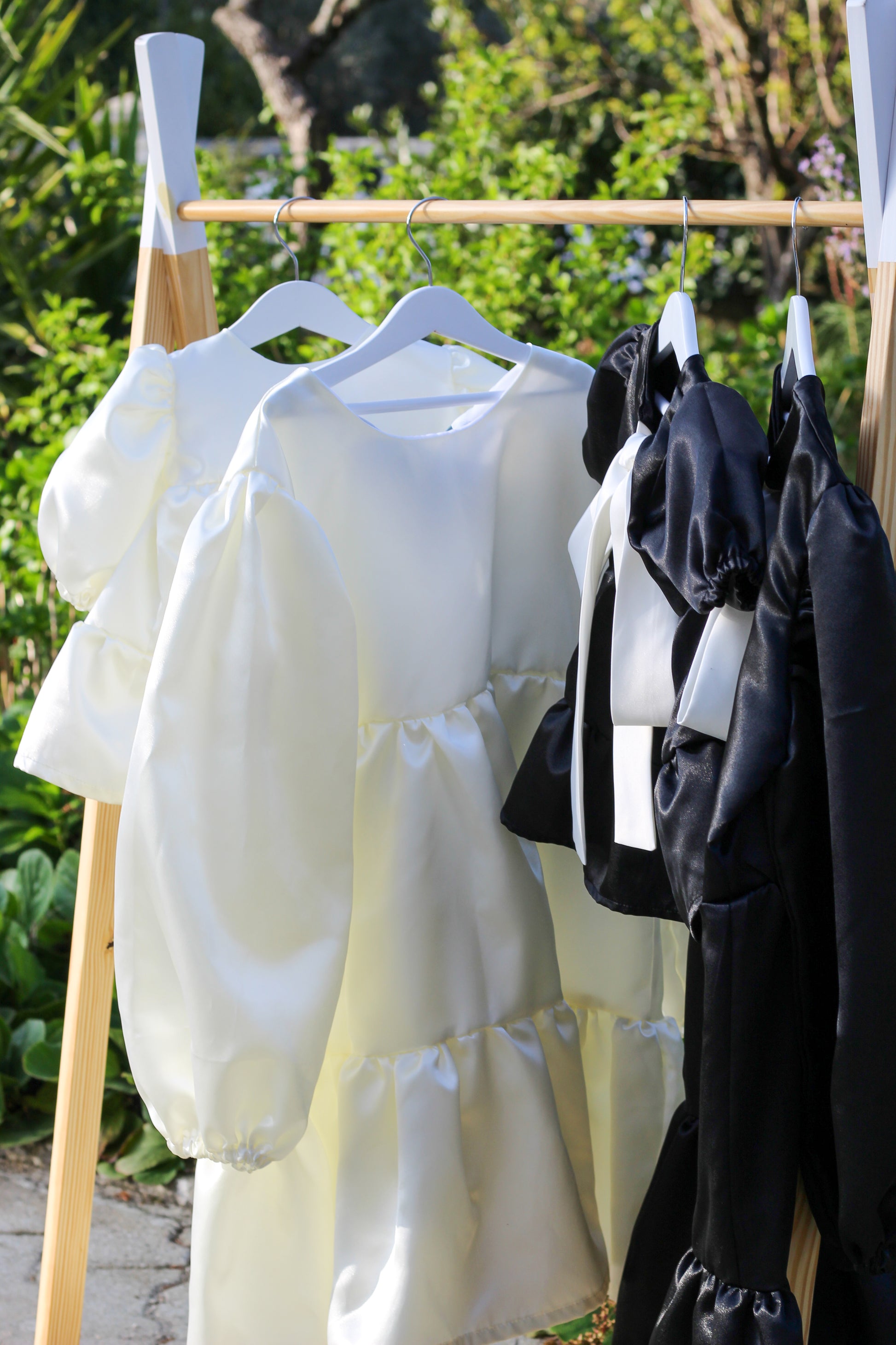 Vestido de cerimónia confecionado à mão em cetim de alta qualidade. Disponível para bebé/criança e adulto.